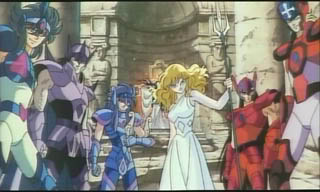 Atena, Hyoga de Cisne, Seiya de Pégasus