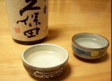 O copo usado é de porcelana branca com dois círculos azuis no interior, denominado de olho-de-cobra. Os círculos coloridos servem para que os especialistas avaliem a transparência da bebida, enquanto o fundo branco, é utilizado para observar a cor do saquê.